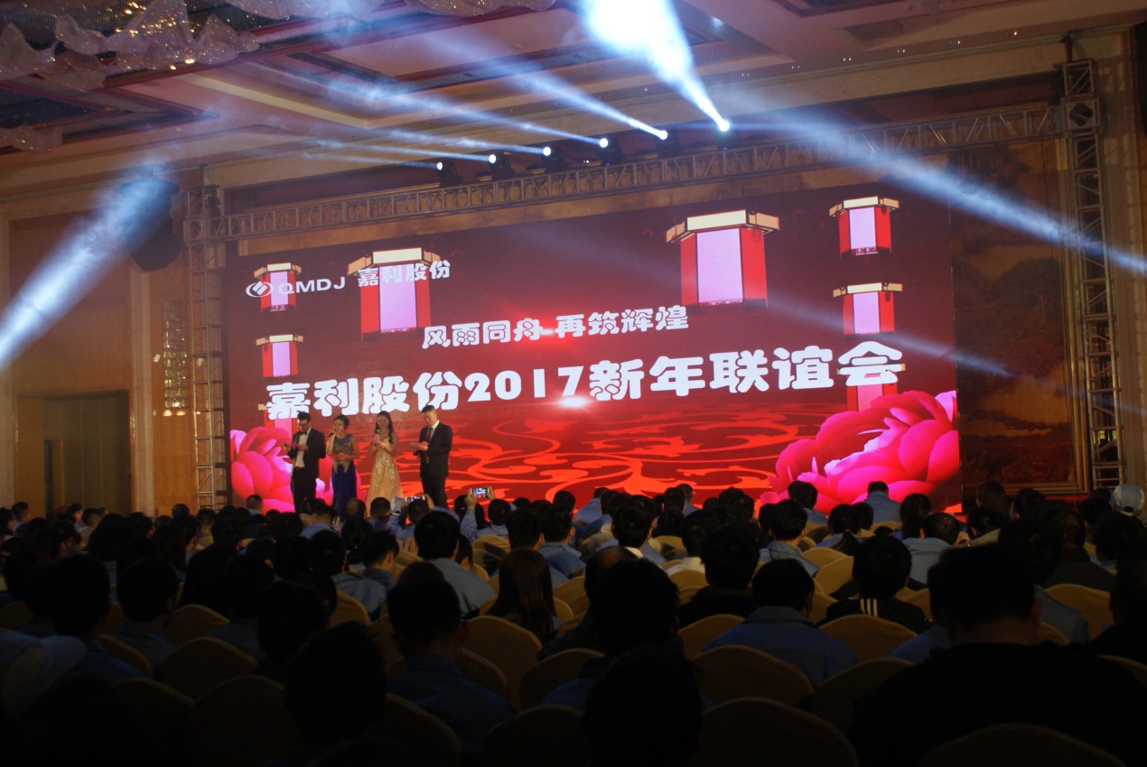 黃玉琦董事長(zhǎng)致辭,向全體員工辛勤的勞動(dòng)表示感謝,提出2017年公司發(fā)展總體目標(biāo),勉勵(lì)全體同仁再接再厲,力爭(zhēng)2017年再創(chuàng)嘉利新的輝煌!提前祝福全體員工及其親人春節(jié)快樂(lè)、家庭幸福、工作順利、雞年吉祥!